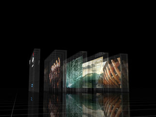 There are animated holograms located inside the glass prisms, which are in parallel with each other. The hologram images give an illusion of reality, thanks to the interactive projection technology.The holograms are about the culture of each region in Turkey. Each region is represented with its music as well as its visual data. Therefore, the regions of Turkey are not only projected visually, but also aurally to the visitors. The visitors of the exhibition space attain diverse experiences as the hologram images overlap with each other on the transparent surfaces.